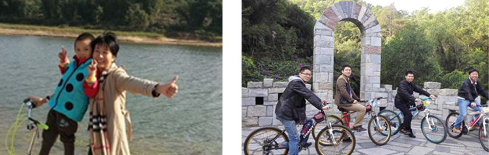 金鐘水庫又號稱“五桂雄峰”,是“中山十景”之一,位于中山“綠肺”五桂山風景區, 是一片天然的生態園區。金鐘水庫綠道環繞金鐘水庫而建,游徑寬4.5米,全長10多公里。坡斜、彎道、風景如畫是這條綠道最大的特點。我們有金鐘水庫山腳下集中。這里是車水馬龍,人山人海,各個出租自行的店鋪擺滿了一排排五顏六色,款式各異的自行車。經過激烈殺價,我們定下活力出租自行車店鋪。每人挑選著一部自己喜愛的自行車后,騎行與步行的同事并一起出發。一進去便眼前一亮,一個望無邊際的水庫呈現在大家眼前,水庫的上空能看滿天飛舞的水鳥在夕陽下鴛鴦戲水。一路上大家哼著歡快的小曲,小孩的歡呼聲,這大自然的歡樂讓一切的壓力和煩惱拋到九霄云外。